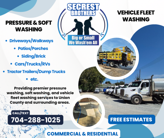 Proudly locally owned and operated, Secrest Brothers is your premier provider of top-notch pressure washing, soft washing, vehicle fleet washing services in Union County and the surrounding areas. Our dedication to excellence and customer satisfaction sets us apart, ensuring your home, business, or vehicles look its absolute best. With Secrest Brothers, you can trust that every job is handled with the utmost care and professionalism. Discover the Secrest Brothers difference today and see why our community relies on us for pristine results and unmatched service quality.